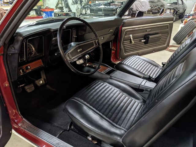 -Absolutely GORGEOUS Garnet Red base coat clear coat paint with the Stripes cleared over. 52 Garnet red paint with 711 Black bucket seat interior!